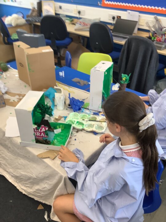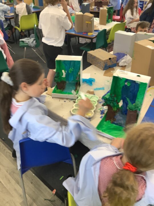 This week, in Class 3, we have been writing sentences in English to describe the journey of the stone. We have been exploring using time adverbials to express how much time has passed by. I am really impressed with the rich vocabulary which is being used, it really helps your sentences to be descriptive. In Maths, Year 4 have been identifying right angels, comparing angles, measuring and drawing accurately with a ruler and identifying horizontal and vertical lines. Year 4 have been identifying quadrilaterals, polygons, line of symmetry and completing a symmetrical figure. On Monday, we enjoyed a whole day of art where the Year 3s produced rainforest dioramas and the Year 4s made junk modelled sculptures of famous buildings such as ‘Big Ben, the Eiffel Tower and Buckingham Palace’. On Tuesday, we really enjoyed watching the Class 4 perform their play ‘Pirates of the Curry Bean’. They were fantastic! Another great week Class 3.